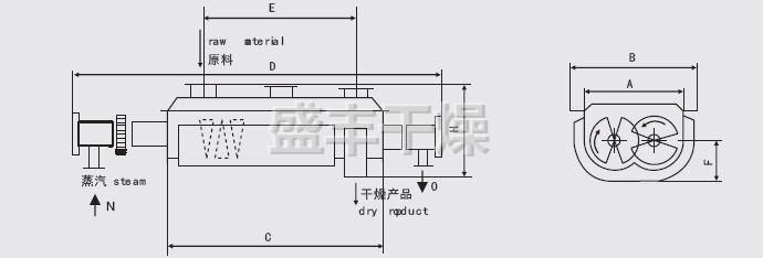 空心轴上密集排列着楔型中空浆叶,热介质经空心轴流经浆叶。单位有效容积内传热面积很大,热介质温度从-40℃到320℃,可以是水蒸汽,也可以是液体型:如热水、导热油等。间接传导加热,没有携带空气带走热量,热量均用来加热物料。热量损失仅为通过器体保温层向环境的散热。楔型浆叶传热面具有自清洁功能。物料颗粒与楔型面的相对运动产生洗刷作用,能够洗刷掉楔型面上附着物料,使运转中一直保持着清洁的传热面。浆叶干燥机的壳体为Ω型,壳体内一般安排二到四根空心搅拌轴。壳体有密封端盖与上盖,防止物料粉尘外泄而充分发挥作用。
