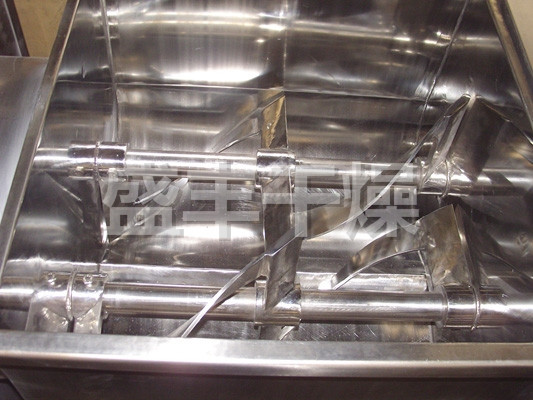 本机与物料接触处均采用不锈钢制造,桨叶与桶身间隙小,混合无死角,搅料轴两端设有密封装置,能防止物料外泻。